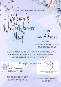 We are so excited to announce our first event of 2026 – the Winter Warmer Meal which kindly supported by our sponsor Mahoney Catering Management, where we will be providing a 3-course meal for 100 Veterans!